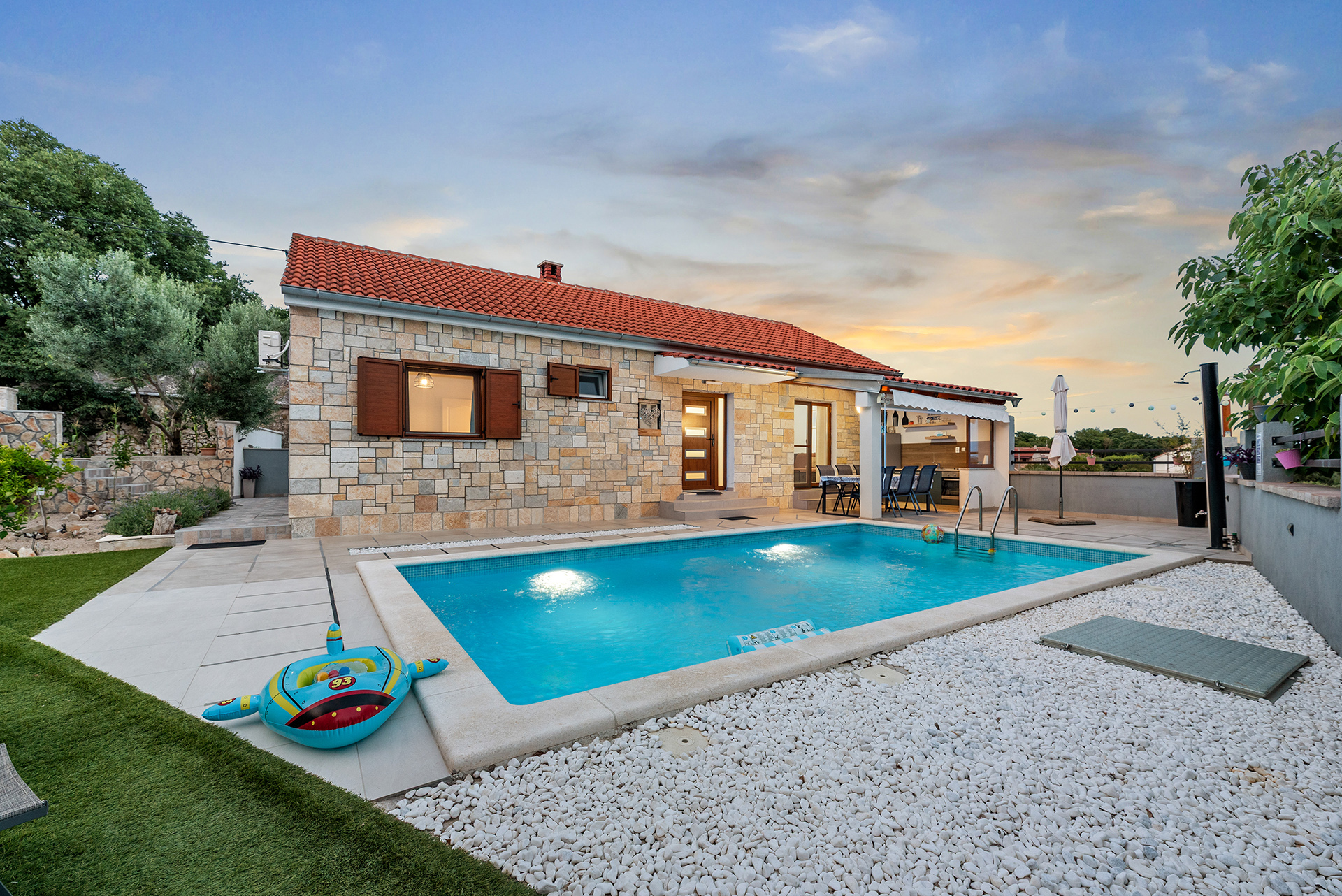 Located just 5 km from the town of Benkovac, the villa is perfectly positioned to explore the best of the region. You are a short drive from the historic cities of Zadar and Šibenik, the stunning waterfalls of Krka and Paklenica National Parks, and beautiful pebble and sandy beaches along the coast. With the airport just 15 km away, your dream Croatian holiday starts here at Villa Niko.